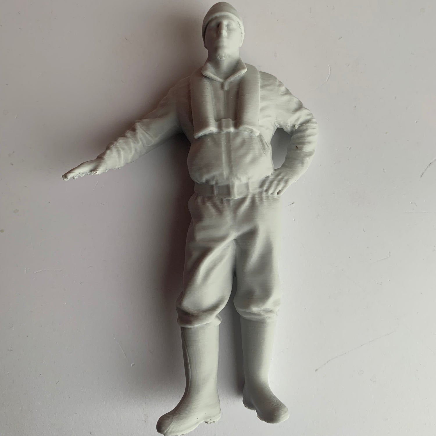 This 1/15 scale crew figure is 120mm high and ideal for display or painting practice. During support removal, the thumb was accidentally broken — apart from this minor damage, the figure is otherwise undamaged.